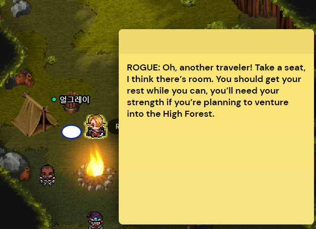 처음 입장하면 모닥불 근처에서 시작되고 맵에 인사말이 적혀있습니다.