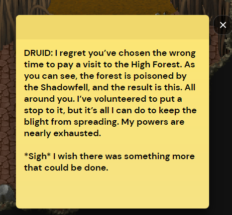 숲이 섀도우펠에 의해 오염되었다고 말합니다.