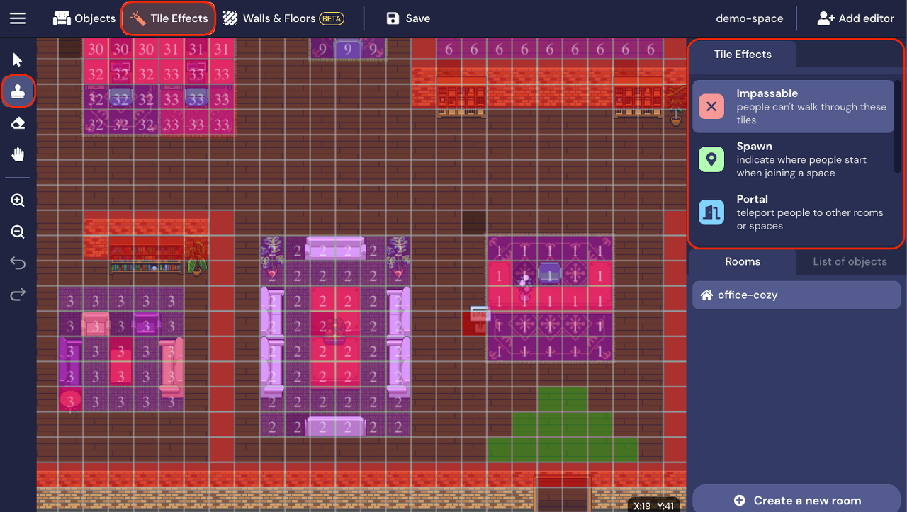 게더타운 Mapmaker에는 특정 효과를 생성하는 데 사용되는 특수 타일 유형이 있습니다.