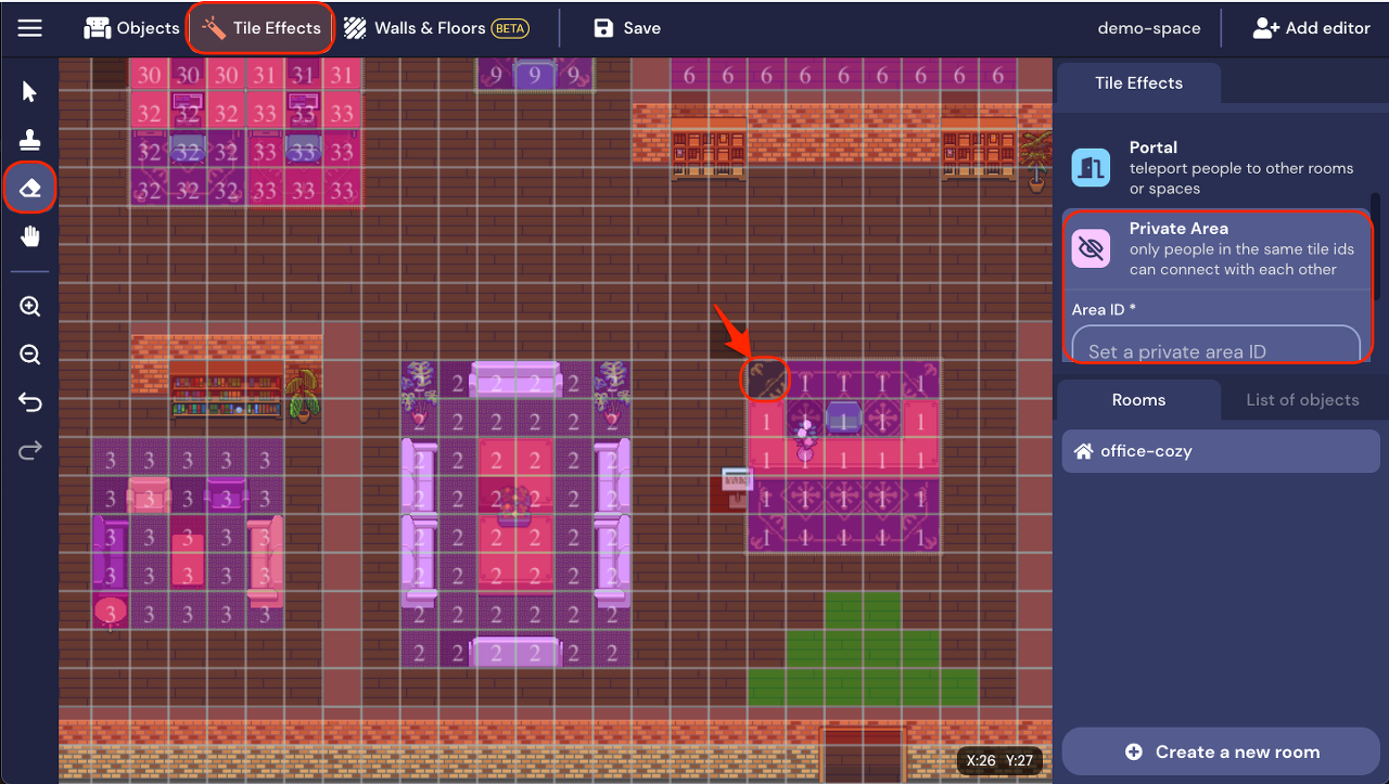 타일 ID는 Private Area 및 Spawn 타일에 사용됩니다. ID 값이 동일한 타일들은 동일한 속성을 가지게됩니다.