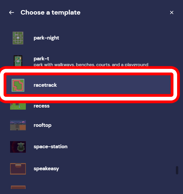 2. Template 아래로 쭉 내리면 RaceTrack 이라는 맵이 보입니다. 이것으로 설치해주시면 됩니다!